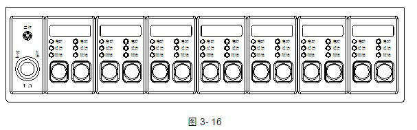 GST-LD-KZ014海灣消防直接控制盤由4路、6路燈鍵板和4路、6路輸出板組成,燈鍵板與輸出板通過16P和10P數(shù)據(jù)線連接,其面板示意圖如圖3-16所示: