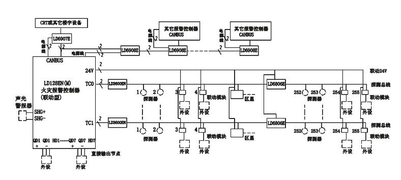 六、利達火災報警控制器(聯(lián)動型) JB-QB-LD128EN(M)系統(tǒng)框圖