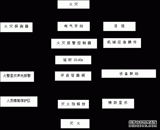 無論裝置處于自動或手動狀態(tài),按下任何緊急啟動按扭,都可啟動滅火裝置,釋放滅火劑,實施滅火。同時控制器立即進入滅火報警狀態(tài)。