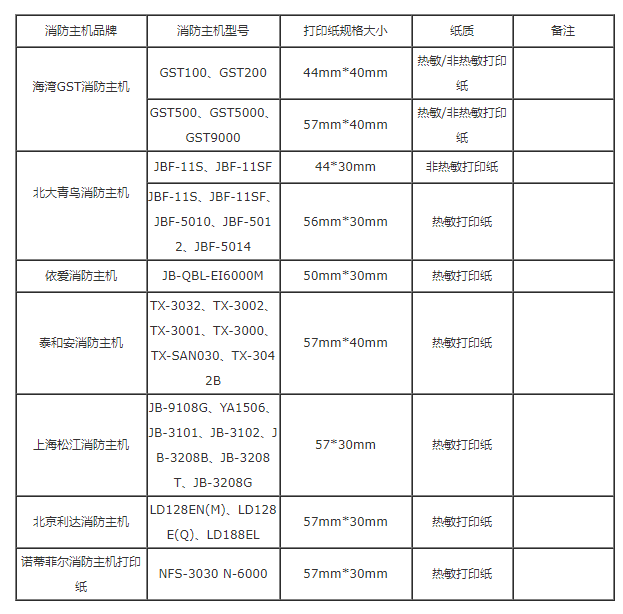 消防主機打印紙分為熱敏和非熱敏兩種,非熱敏紙是與打印機色帶配套使用在針式打印機上,購買打印紙時需要分辨清楚,下面是小編統(tǒng)計的一下消防報警控制主機的消防打印紙規(guī)格,提供參考。